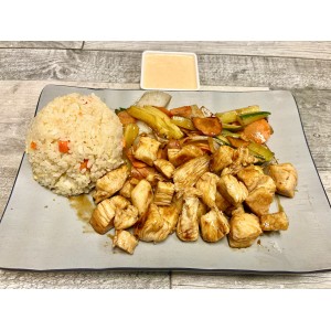 chicken breast, vegetable mix grilled with teriyaki served with fried rice, house soup or house sala..