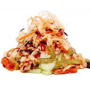 fresh iceberg lettuce, carrot & red cabbage with homemade ginger dressing..